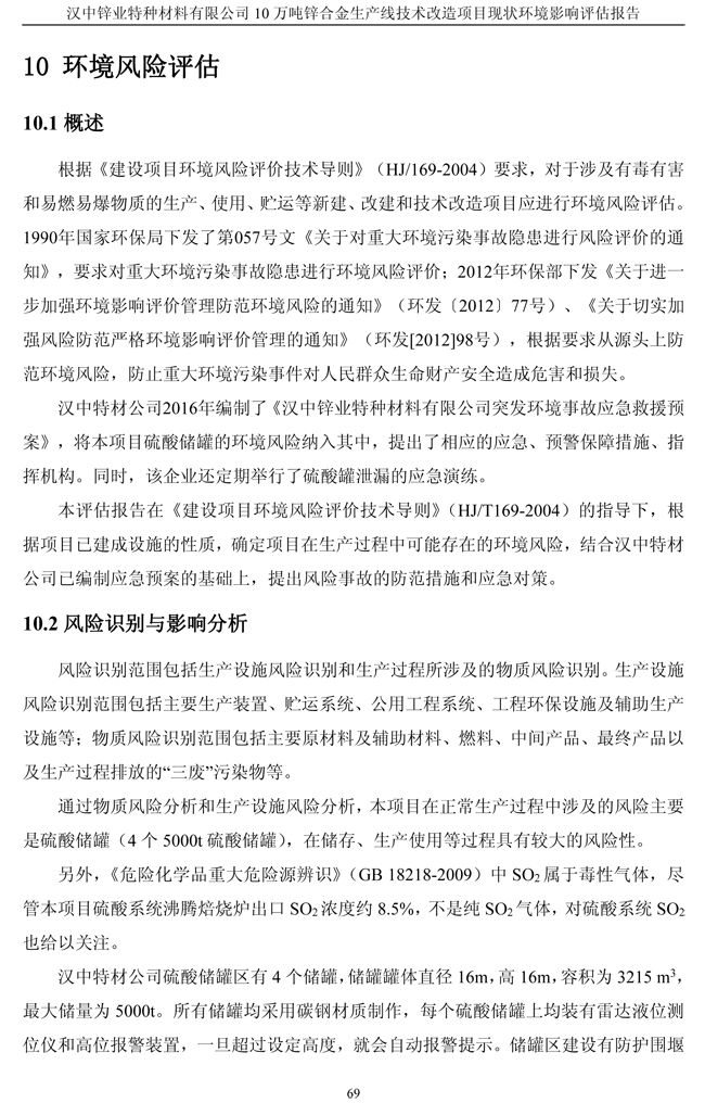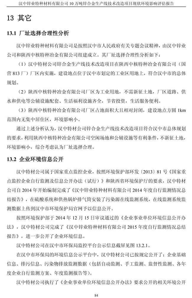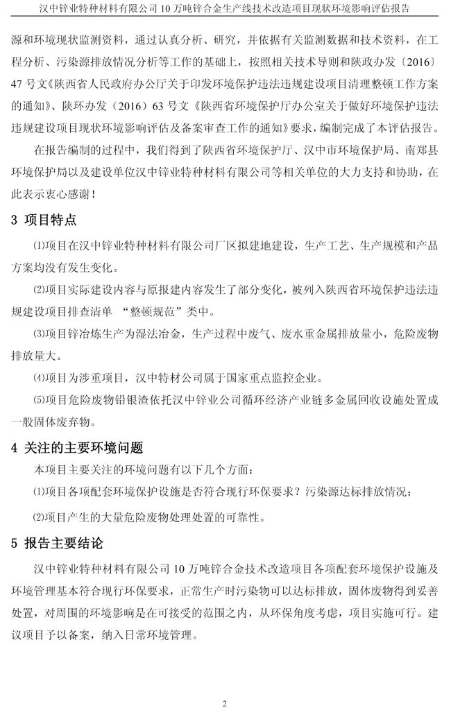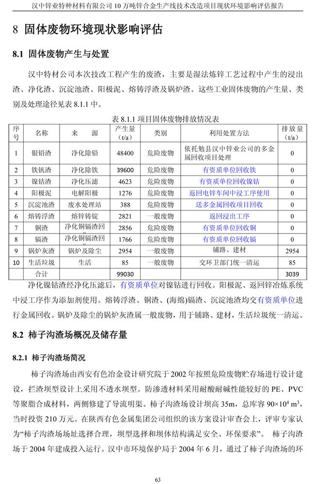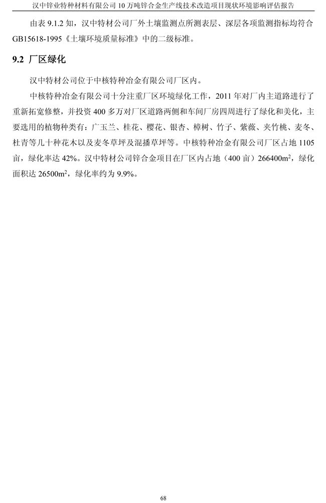 項目實施單位:漢中鋅業有限責任公司 評估報告編制單位:西安建筑科技大學