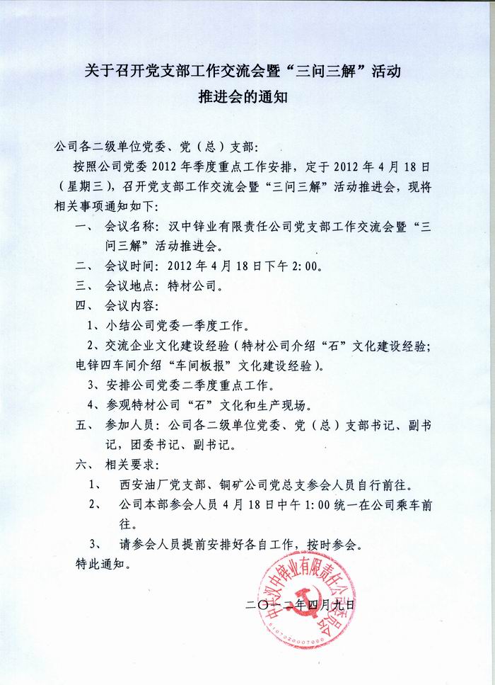 召開黨支部工作交流會暨三問三解活動推進(jìn)會通知