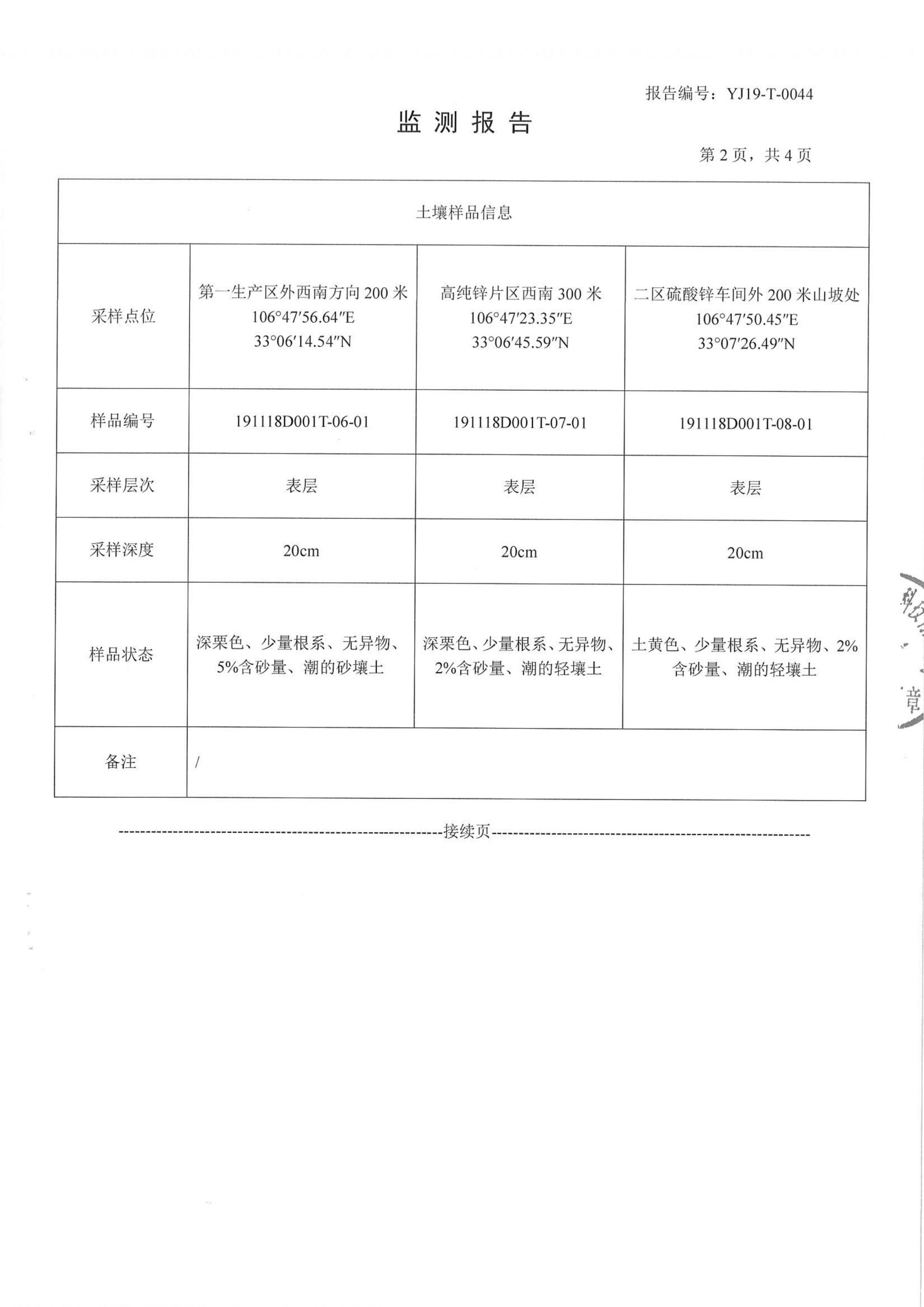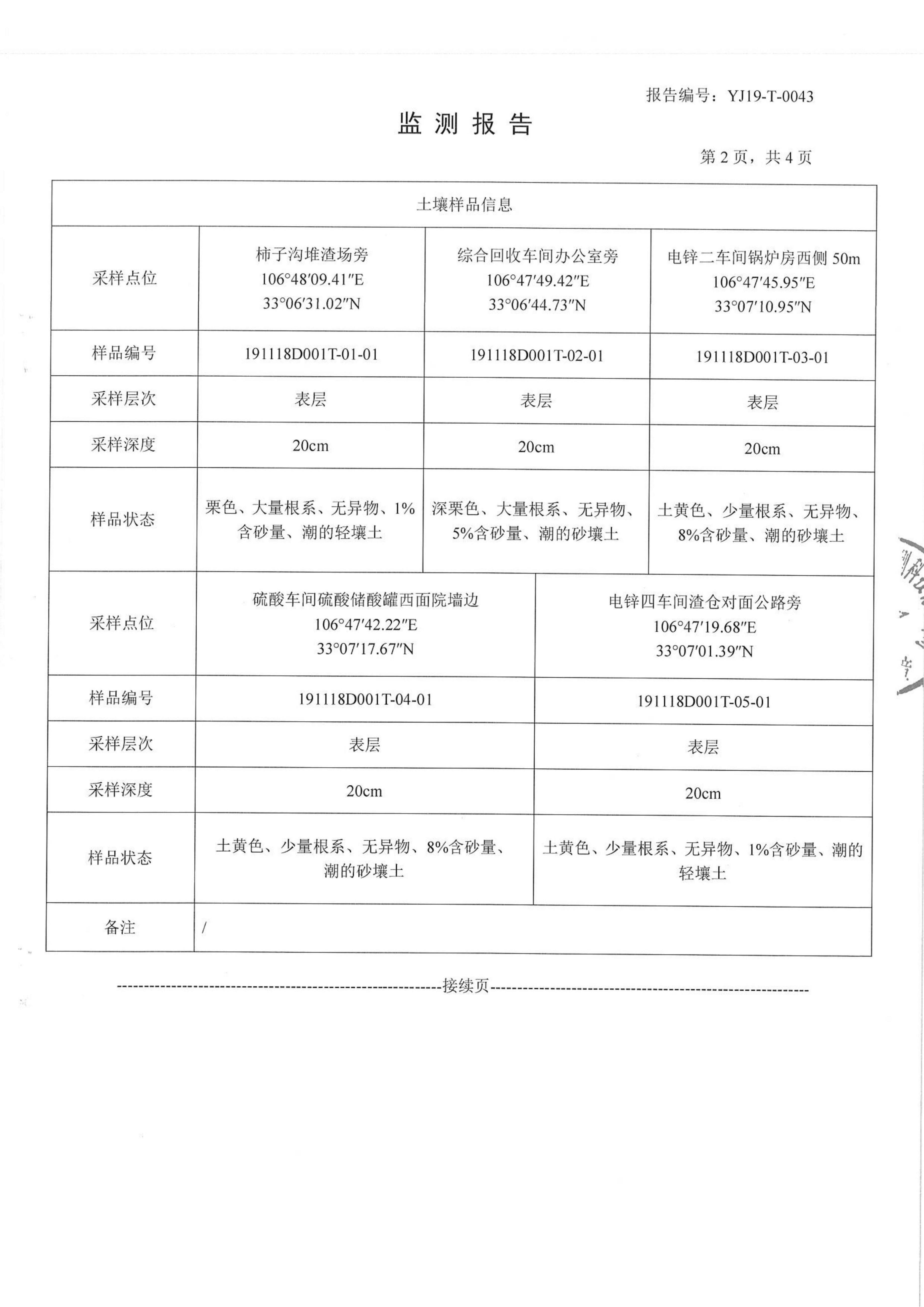 漢中鋅業(yè)有限責(zé)任公司2019年度土壤自行監(jiān)測(cè)公示