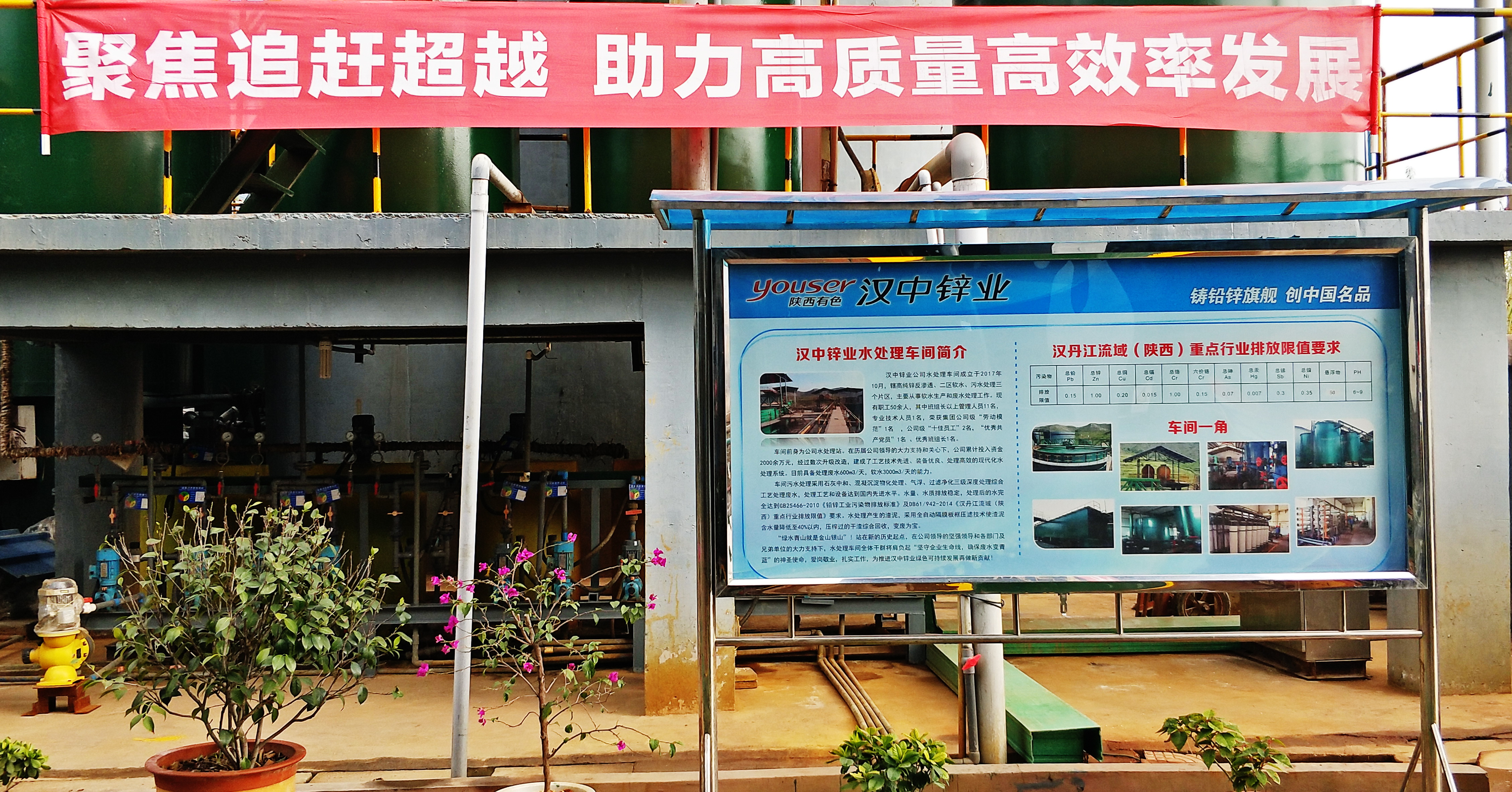 然而,當(dāng)我們走進漢中鋅業(yè)公司水處理車間,奪目而入的景色卻令人眼前一亮:一字排開的垂柳,枝繁葉茂,黃綠相間的枝葉在冬日暖陽下翩翩起舞。沿圍墻新砌的小花池綠意盎然,大門旁的兩棵鐵樹在花團錦簇的萬壽菊簇?fù)硐拢鷻C勃勃。剛刷過漆的綠色柵欄式推拉門與金光燦燦的“水處理車間”銅字招牌相得益彰,熠熠生輝,關(guān)不住滿園景致,綠色的設(shè)備,綠色的通道,黃色的邊界線,擺放整齊的盆景,醒目的巨幅宣傳牌、宣傳橫幅、櫥窗,洋溢著濃厚的文化氣息。