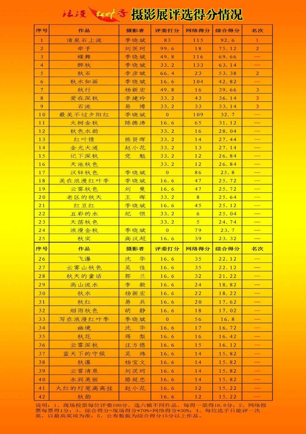 綜合得分表(15分以上作品)