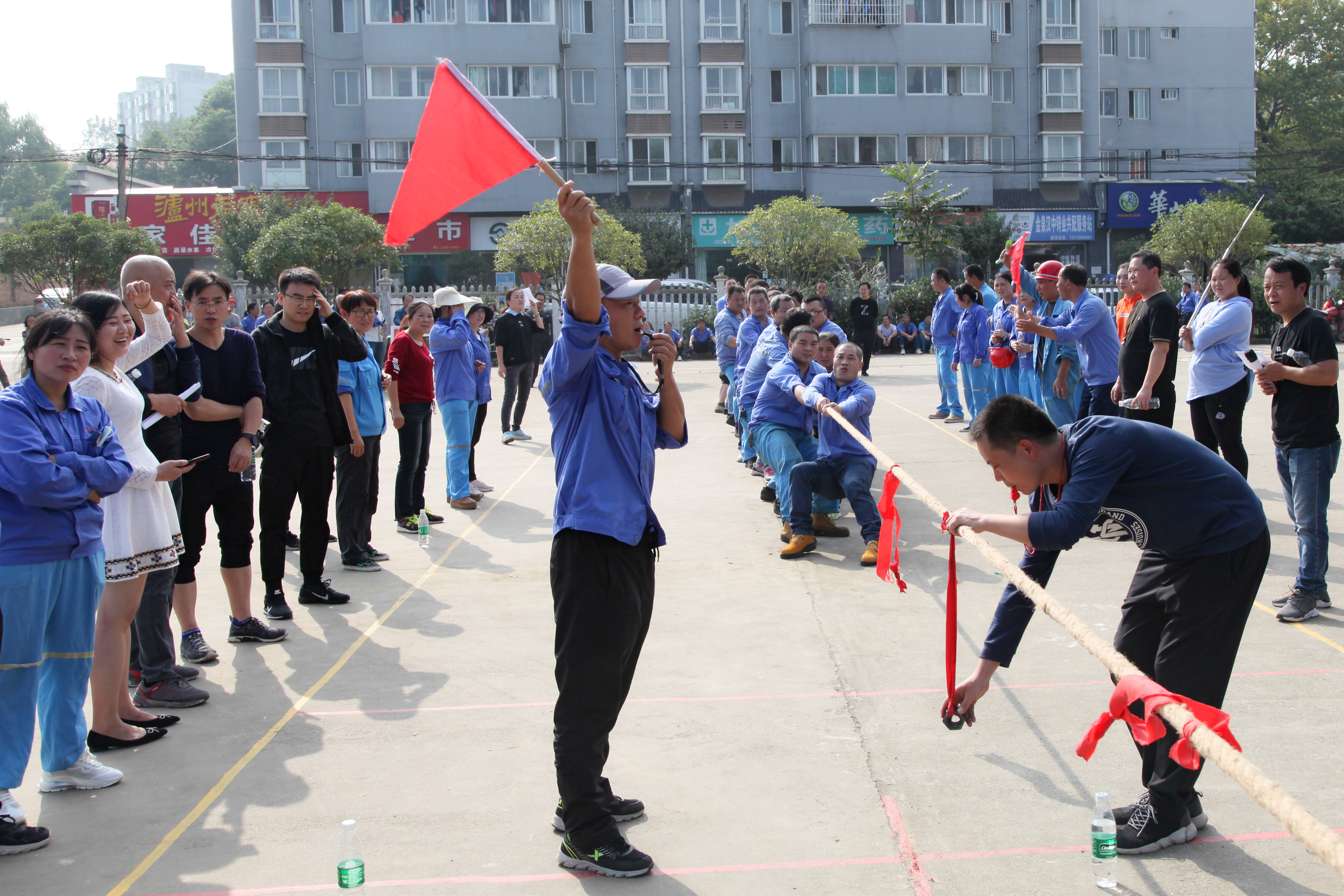 舉國(guó)歡騰迎國(guó)慶,華誕祖國(guó)紅爛漫。今年是建國(guó)71周年,為豐富公司職工精神文化生活,促進(jìn)各基層單位職工之間的交流,營(yíng)造歡樂祥和、奮發(fā)向上的良好氛圍,激發(fā)追趕超越的動(dòng)力和信心,推動(dòng)公司各項(xiàng)工作再上新臺(tái)階。9月29日,公司工會(huì)舉辦迎國(guó)慶職工拔河比賽,總部各基層單位共12個(gè)代表隊(duì)300余人參加,公司黨委副書記、總經(jīng)理王正民親臨現(xiàn)場(chǎng)為冠亞軍爭(zhēng)奪賽加油鼓勁。工會(huì)副主席劉洪軍、女職委主任王建軍、黨群部主任路延忠及各基層單位工會(huì)主席參加活動(dòng)。