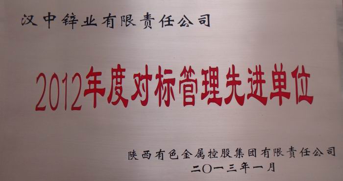 2013年1月,公司被陜西有色金屬控股集團有限責(zé)任公司授予2012年度“對標(biāo)管理先進單位”榮譽稱號 -