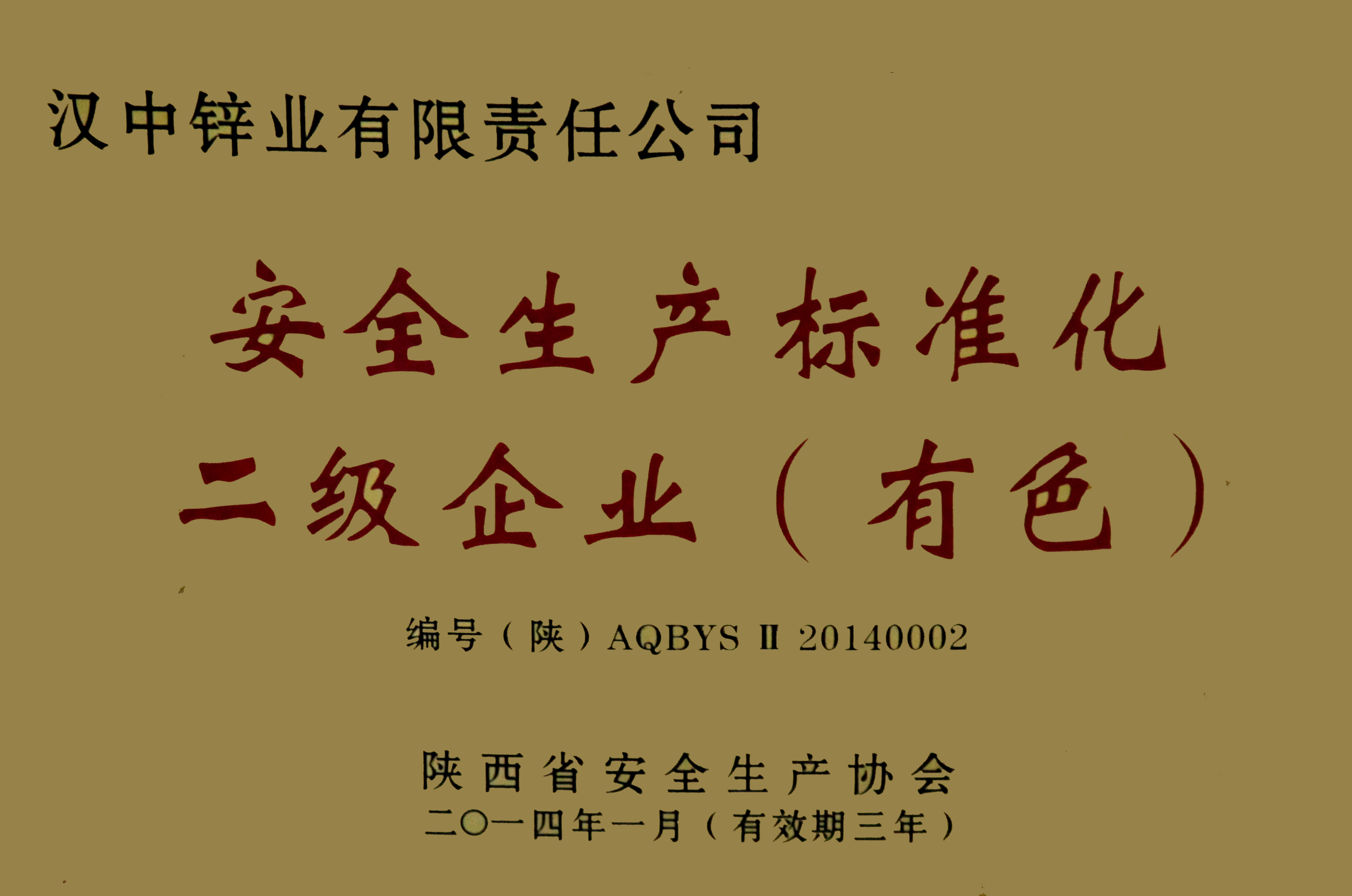 2014年安全生產(chǎn)標(biāo)準(zhǔn)化二級企業(yè)(有色) -